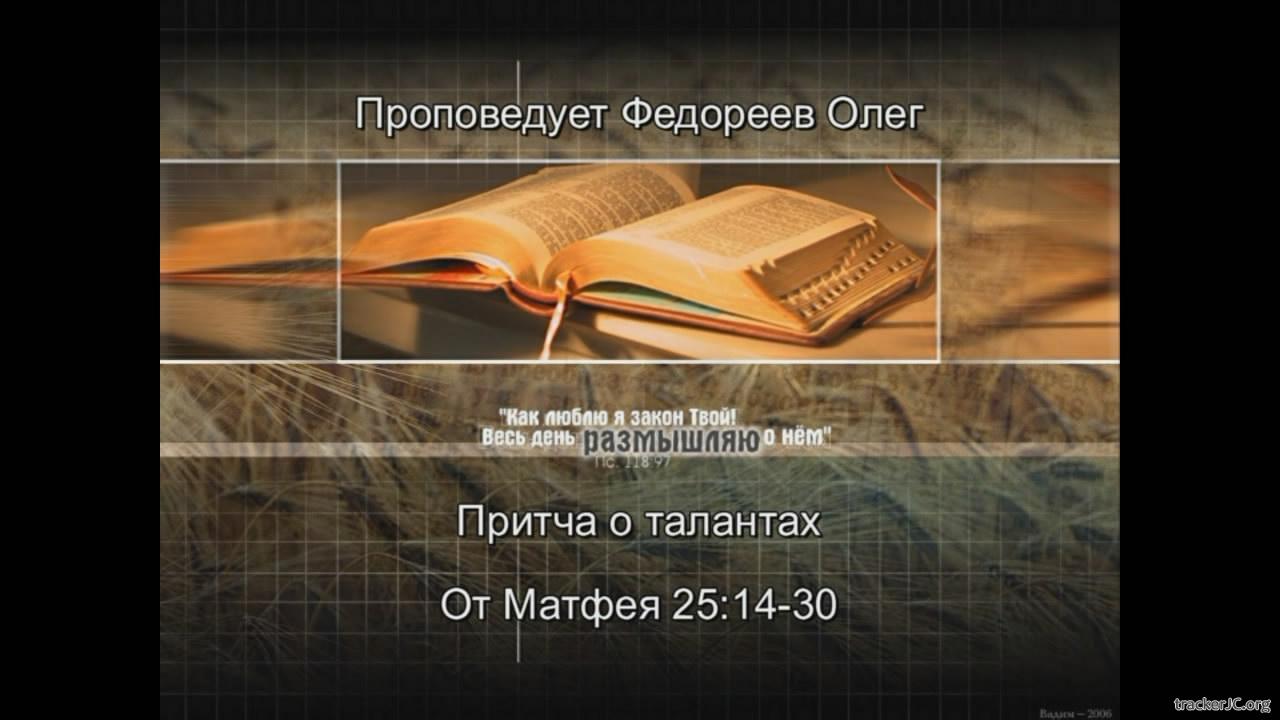 Информация о видео-материале Проповедник: Федореев Олег Леонидович Тема: Притча о талантах Год выхода: 2010 Жанр: Видео проповедь