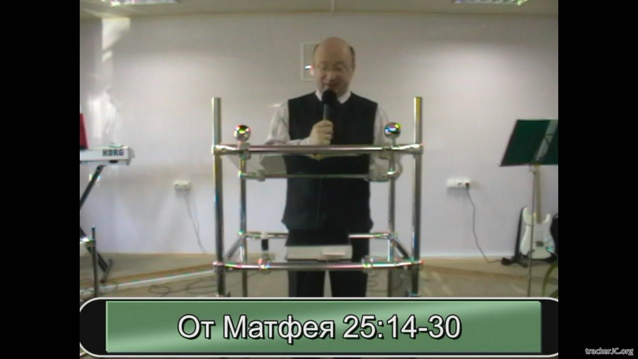 Описание: Пастор с города Иркутска, магистр богословия Федореев проповедует по Евангелию от Матфея 25:14-30 о талантах. Итак, бодрствуйте, потому что не знаете ни дня, ни часа, в который приидет Сын Человеческий. Ибо [Он поступит], как человек, который, отправляясь в чужую страну, призвал рабов своих и поручил им имение свое и одному дал он пять талантов, другому два, иному один, каждому по его силе; и тотчас отправился.