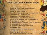 Описание: В современной христианской церкви немало ветвей и конфессий, богословских разногласий и разделений. Однако не смотря на все разногласия в церкви по-прежнему существуют верования, которые объединяют христиан. Эти ключевые правила веры на протяжении почти двух тысячелетий излагаются в Апостольском Символе веры.