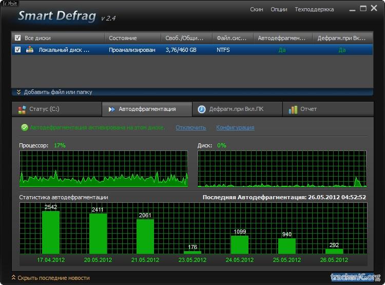 Название: Smart Defrag 2.4 Год выхода: май 2012 Платформа: Windows 7,8,Vista,XP,2000 Язык интерфейса: мультиязычный(русский) Тип распространения: бесплатно Описание: Автоматизированный и эффективный дефрагментатор.Ускорение всей системы с быстрой и эффективной дефрагментацией диска Особенности:
