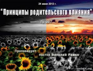 Проповедь: «Принципы родительского влияния» (Пр.20:7) – пастор Виталий Рожко