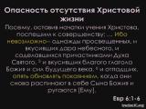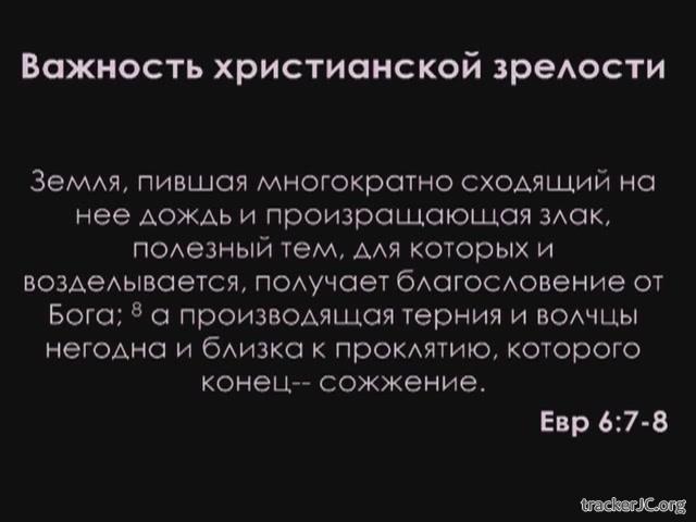 Начало шестой главы послания к Евреям - одно из наиболее сложных мест Нового Завета. Понимание его возможно только тогда, когда оно рассматривается в общем контексте всего послания. Главная мысль этого отрывка - объяснение необходимости реального роста в христианской зрелости и призыв к нему. До и после этого призыва автор приводит несколько серьезных причин, по которым истинное познание Иисуса Христа обязательно должно производить духовный рост. В чем заключаются эти причины и почему они приведены здесь? Как это касается нас сегодня? Об этом пойдет речь в проповеди.