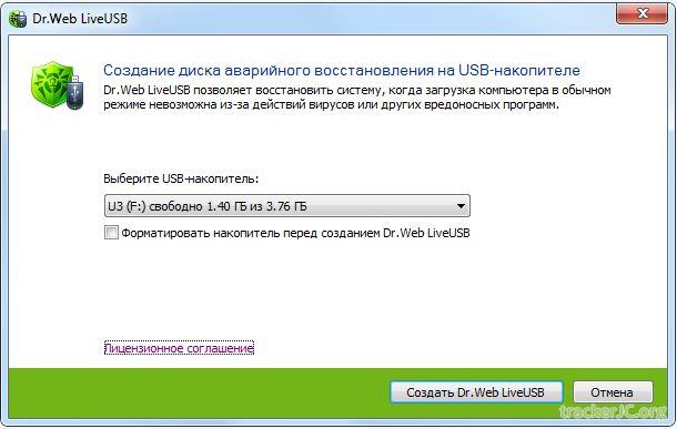 4. Для создания загрузочной флеш-карты нажмите кнопку Создать Dr.Web LiveUSB.