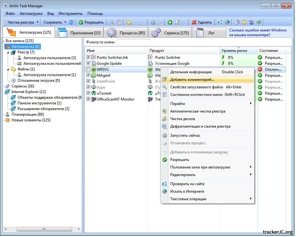 · Менеджер автозапуска - управление запуском всех программ, включая службы и панели инструментов Internet Explorer;