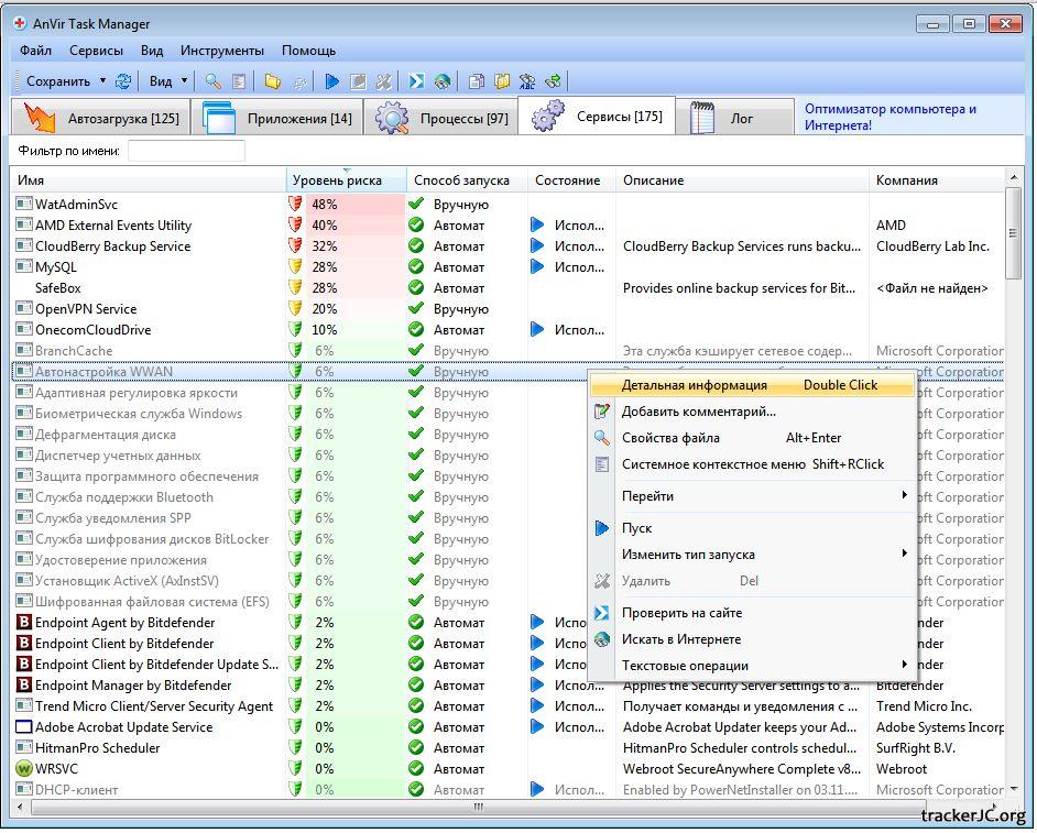 Название: AnVir Task Manager 7.5.2 Год выхода: 2013 Платформа: Windows: 8 / 7 / Vista / XP 32|64-bit Язык интерфейса: Русский / английский Тип распространения: Freeware (Бесплатно) Описание: AnVir Task Manager - менеджер автозагрузки, который позволяет управлять загрузкой программ, процессов, драйверов и служб при старте системы Windows. Помогает оптимизировать работу компьютера и справляться с вредоносными угрозами. AnVir Task Manager является комплексным решением, которое позволяет пользователям управлять всеми запущенными процессами и элементами автозапуска.