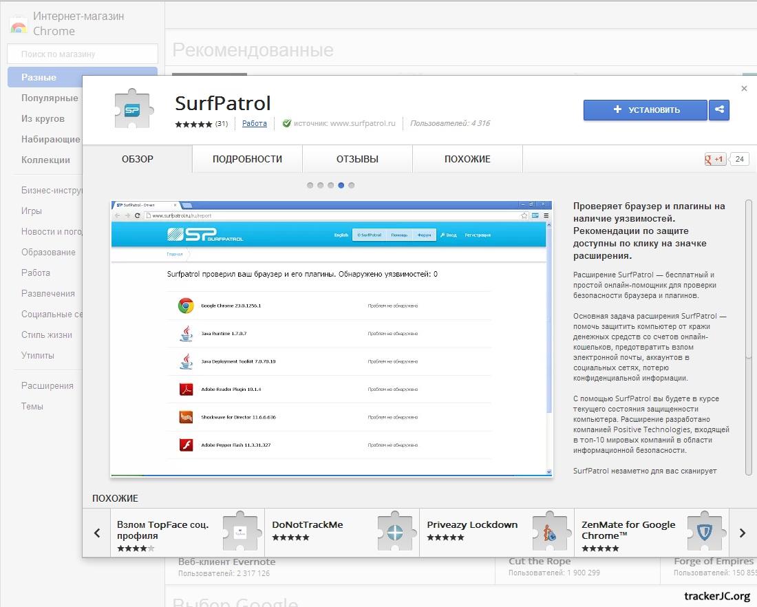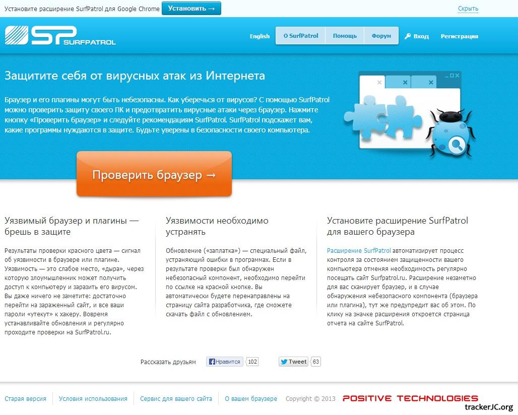 Другие проверки безопасности Назначение сервиса SurfPatrol Браузер и плагины могут быть небезопасны