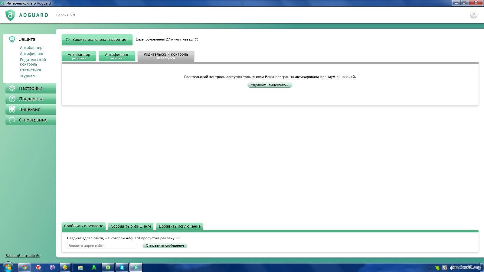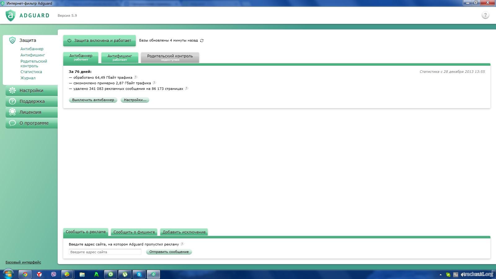 Название: Adguard 5/9 Дата выхода: 20 марта 2014 г. Платформа: Windows XP, Vista, 7, 8, 8.1 Язык интерфейса: Русский, Английский, Немецкий, Японский, Испанский, Португальский, Сербский Тип распространения: Shareware первые две недели программа будет работать бесплатно, а после нужно покупать. как получить официальный ключ бесплатно: вложил описание в торрент Описание: Adguard – это программа для блокировки рекламы, которая действует как антибаннер, антифишинг и родительский контроль (начиная с версии 5.9). Антибаннер помогает убрать всплывающие окна, объявления, баннеры и другую рекламу с веб-страниц. При этом фильтрация происходит еще до загрузки страниц в браузер, а это значит: а) никаких рекламных изображений, б) экономия трафика и в) ускорение загрузки сайтов. Антифишинг защищает от сайтов мошенников и сайтов, содержащих вредоносные программы. Программа действительно снижает вероятность заражения компьютера вирусами. Благодаря обширной базе опасных сайтов Adguard работает быстро, молниеносно проверяя их URL. Родительский контроль позволяет ограничить доступ к материалам для взрослых и обеспечить безопасность детей в интернете.