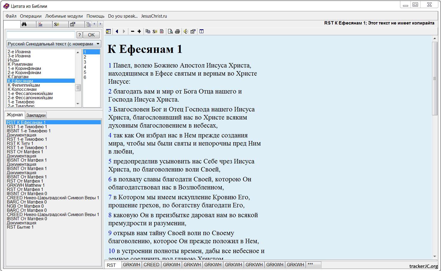 Название: Цитата из Библии 5.01 (Электронная Библия) / BibleQuote 5.01 Год выхода: 2003 Платформа: Windows Язык интерфейса: Русский, Украинский, Английский, Немецкий Тип распространения: Бесплатно Описание: «Цитата из Библии» родилась как простая программа для цитирования текстов Библии и